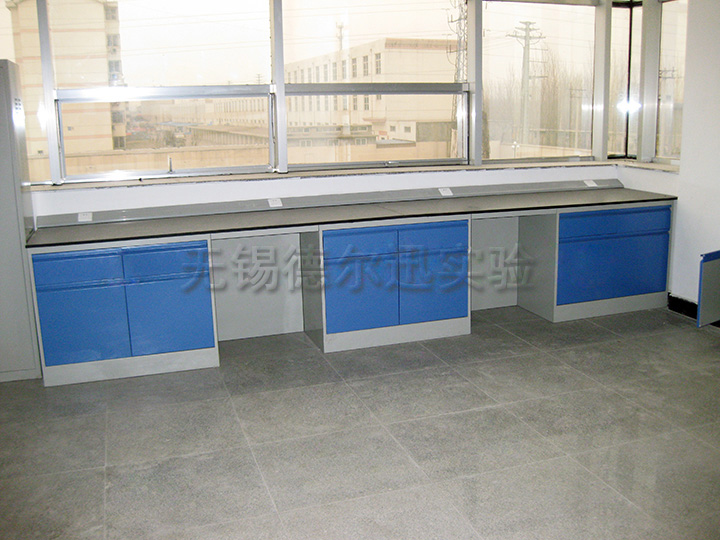 a、理化貼面板采用25mm厚的環保型中纖板為基材,表面粘壓耐酸堿的進口0.9mm厚Chemsurf理化板,臺面四周斷面經2.0mm厚PVC封邊防水處理,外表。